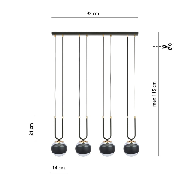 Lampa suspendata neagra cu accente aurii 4 lumini Glam