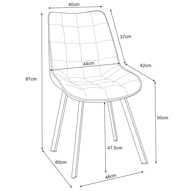 Șezutul și spătarul sunt complet învelite în tapițerie din catifea moale, făcând scaunul extrem de plăcut la atingere și surprinzător de confortabil, chiar și în zilele călduroase. Matlasarea (cusăturile decorative) aplicată pe tapițerie adaugă un plus de eleganță și un stil atemporal, transformând scaunul într-o piesă de mobilier distinctivă.